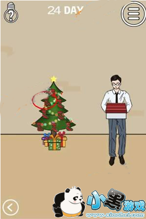 首先点击圣诞树获得袜子,接着把袜子放在床尾。