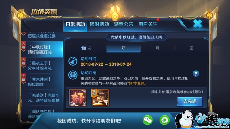 王者荣耀“重剑为义,绽放讯烈之华;双刃为情,盛开旋舞之美”是哪个英雄?在王者荣耀中秋灯谜活动中,“好”字礼包里是这样描述英雄的,相信有些玩家不是很清楚到底指的是谁,下面我们就一起来了解下吧。