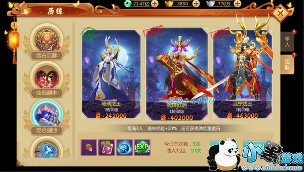 可以赢取大量经验,首次通关固定层级之后还可以领取仙缘提升人物天赋。