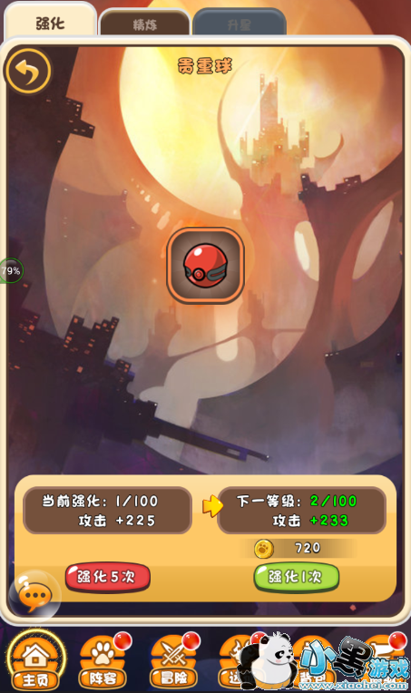 游戏主界面-养成-道具,选择相应的装备!选择精炼