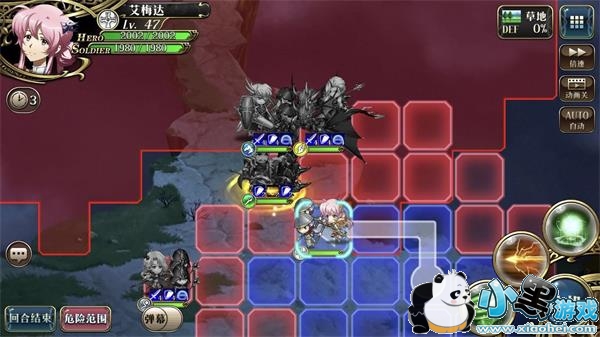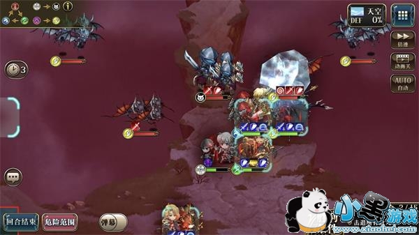 第二回合,粉毛龙卷,里昂千骑突掉亡灵骑士。这里注意左边的蝙蝠,如果粉毛吐槽上了降攻击女王就走光头下方群体治疗,如果上了降防降魔防,就需要女王和元帅合力这回合把它处理掉。