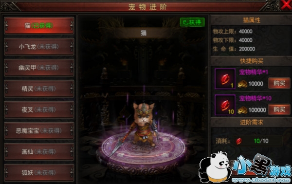 宠物进阶后属性会大幅度提升,宠物属性分为物攻上限、物攻下限和生命值。