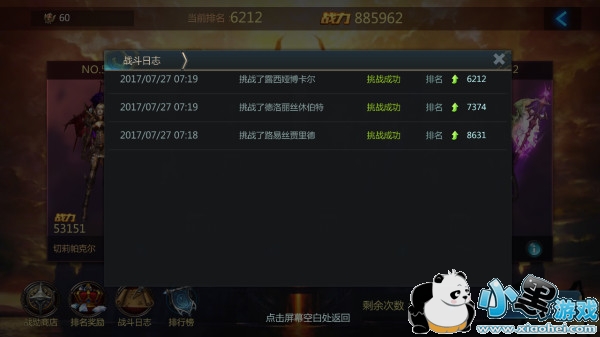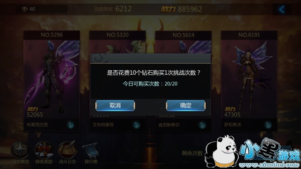 玩家每日的免费挑战次数有限,所以请谨慎选择挑战对手,但若次数不足,也可以花费钻石购买挑战次数。