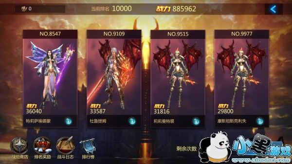 进入竞技场后,系统将根据玩家当前的战斗力,自动为玩家分配4位对手,玩家可以查看到对手的各种信息、了解对手的实力,便于选择挑战的对象;