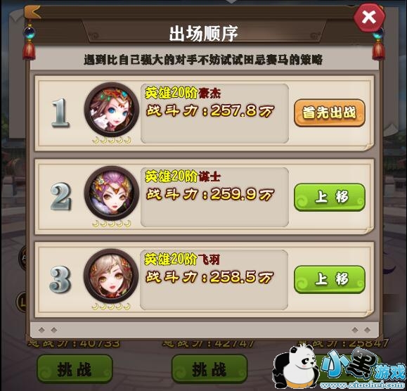 同伴出战之前可以先观察下对方的出战顺序以及每个同伴的战力情况来采取对战策略。比赛为三局两胜制,遇到比自己强大的对手可以选择田忌赛马策略来进行比拼,提高获胜几率。