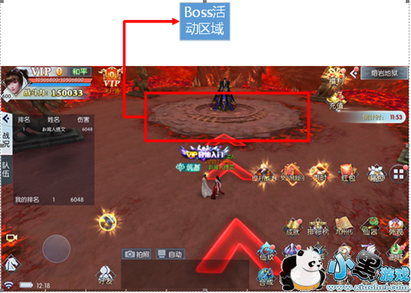 红框区域是Boss活动区域,如果没有玩家进入Boss可攻击范围,Boss始终都会在这一区域内待机。