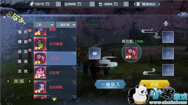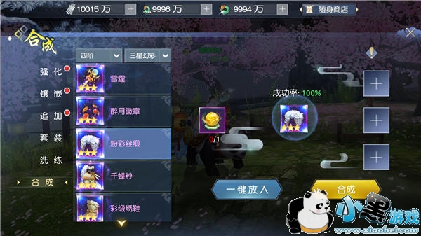 5)四阶(400级)装备开始有幻彩品质,想要合成幻彩装备需要3件同品类红色3星装备作为基础,还需要游戏内顶级道具