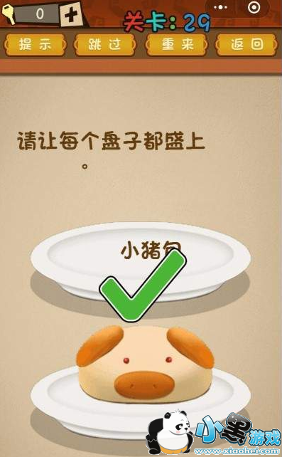 《微信最强大脑乱斗》第29关怎么过?第29关请让每个盘子都盛上小猪包,题目中只有一个包子,怎么才能让另一个盘子也有呢,下面我们来看下正确的答案是什么吧!