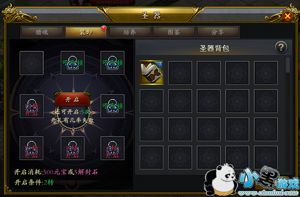 圣器获得后可进行装卸,每个人最多可以装8枚圣器,开锁需要消耗解封石: