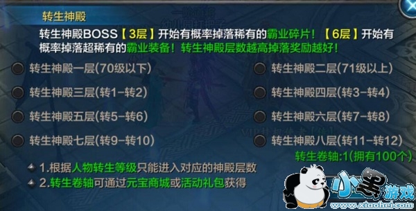 通过祖龙城安全区的转生神殿传送员即可进入转生暗殿,进入需要消耗转生神殿卷轴。