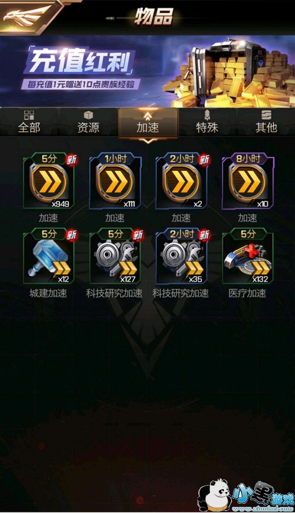 2、以训练加速为例,平时训练没必要把训练加速用的一个不剩(同样,通用加速用在练兵也非常奢侈,建筑加速需求量只增不减),等到有暴兵的活动,或者说被敌人进攻时,通过雷达知道敌方步兵构成,暴兵制造克制的兵种,打他一个出其不意,才是比较合理的使用方法。