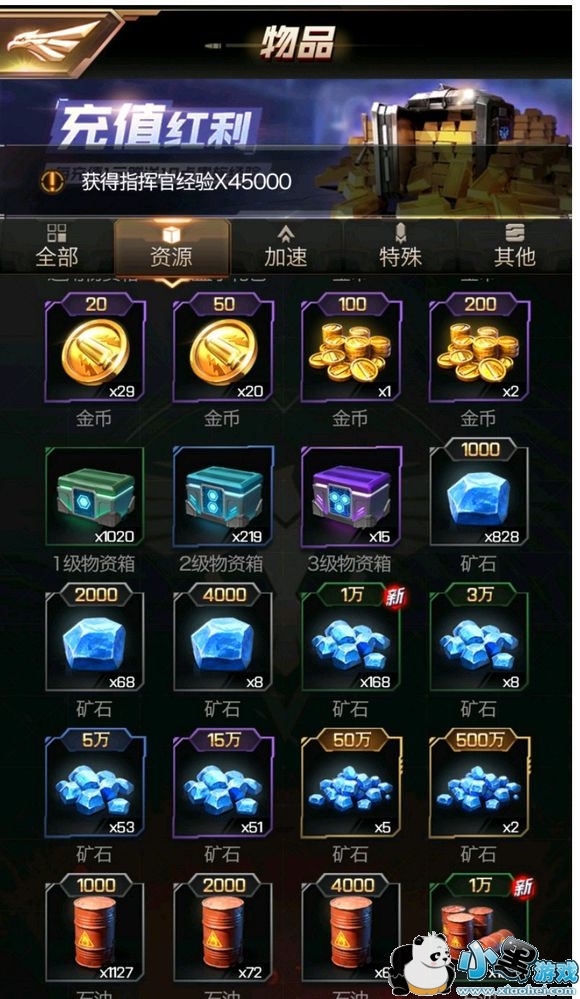 1、不仅仅是矿石、石油等矿产资源,同时也包括了金币、金砖和加速道具以及时间,没错,你个人的时间也是一种资源,好好规划自己的游戏时间,也是中期发力必不可少的因素。