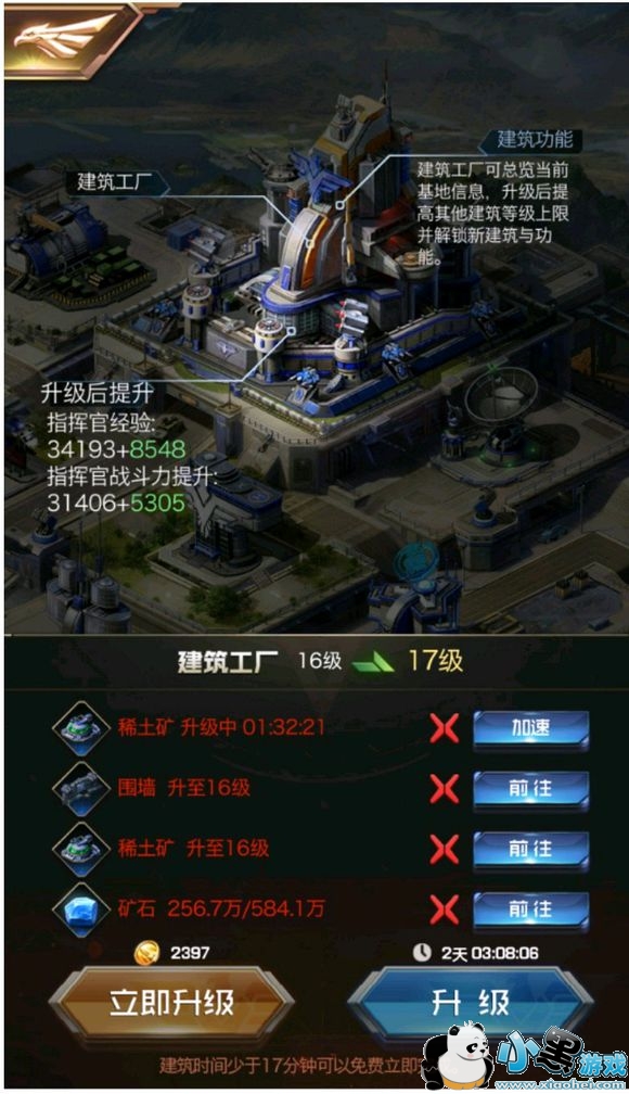 1、进入中期后升级建筑工厂、城墙等核心建筑动辄好几百万,采集一个22W左右的矿石都需要4个小时以下,效率非常之低下。