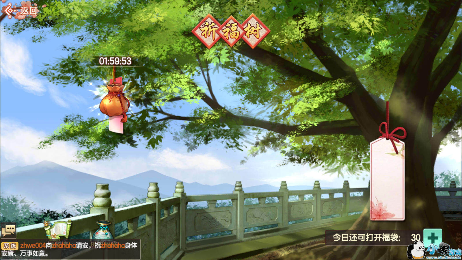家族祈福是给家族成员发随机红包,发放方式是在祈福界面点击左下角的红包进行挂福袋,每日最多可以发放6个红包,最多可以打开40次,所以在悬赏中获得的福袋建议大家积极分享,温馨提示自己挂的福袋自己也可以打开哦。