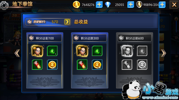 “地下拳馆”一共有100层,玩家挑战的层数越高,获得的奖励也会越来越丰富,每次挑战成功就会向下层移动,并且获得相应的拳馆积分。那么积分可以用来做什么呢?“地下拳馆”设有“拳馆商店”,玩家可以在里面购买部分的角色碎片、武器觉醒碎片、戒指经验石和金币,购买的东西可谓是相当超值哦!除了可以在“拳馆商店”购买东西之外,“地下拳馆”还设有阶段性奖励,当拳馆获得的总积分达到某个阶段时,即可领取丰厚的奖励,当然也是阶段越高奖励越丰厚的哦!