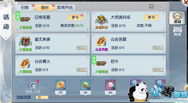 如果错过了活动推送或者关掉活动推送也不要着急,由于大荒演兵场没有界面直接入口按钮,我们需要点击右上角的“活动”按钮,在弹出的活动界面中点击“限时”页签,再点击“大荒演兵场”即可开始匹配。