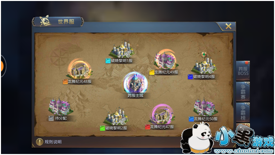 在每层有4个首领,首领在每日10:30、12:30、18:30、20:30、22:30刷出,首领每日没有奖励次数限制,刷出后即可进行挑战。首领掉落归属于对首领伤害最高的玩家和其公会成员。首领死亡时,对其伤害最高的玩家和其公会成员还可以获得投点奖励。击败跨服BOSS可以获得各种高级进阶装备和古饰等,但是因为跨服BOSS奖励丰厚,所以对战力要求也比较高哦~而且会有很多人参与争夺,所以一定要谨慎参加哦~