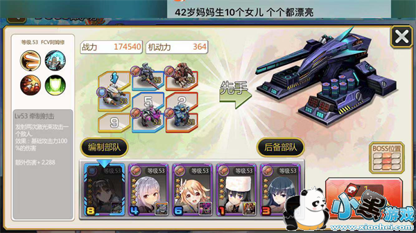 BOSS 5号位是主要技能触发机体,非常硬,不推荐单体强攻,所以我把T放在后排,因为T本身没有啥攻击,而且后排不占回合数,尽量不要让T占2号位置