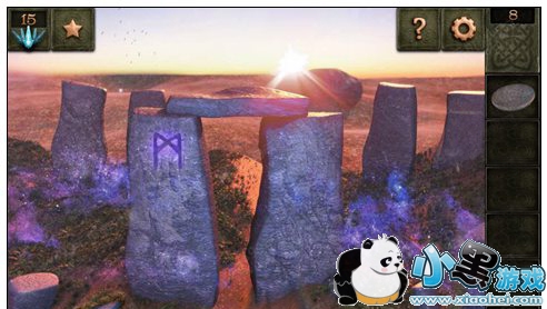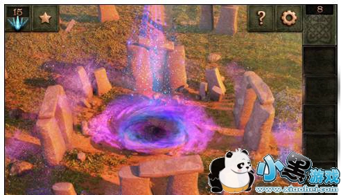 5、将三角石板和石盘放入中间石桌对应的位置上面,石阵中间就会出现一个漩涡,点击逃脱。