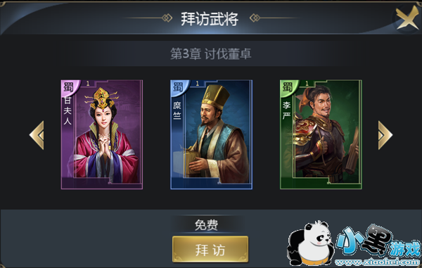 通过相应的章节可以进行拜访武将,随机可获得一名得力干将呢