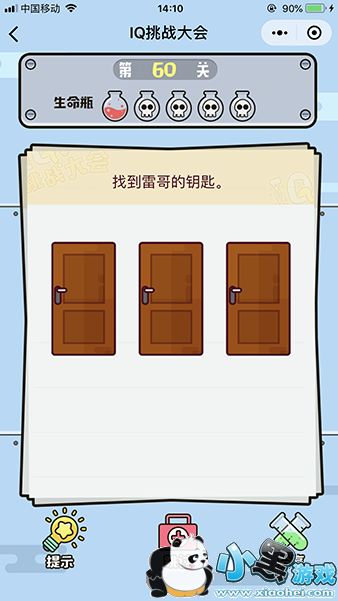 《微信iq挑战大会》第60关怎么过?第60关的题目是找到雷哥的钥匙?这一关的话主要的还是如何将门打开,这样你就知道钥匙在哪里了,那么下面我们就来看下这一关的答案吧。