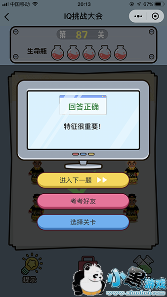 以上就是小黑市场为大家带来的《微信iq挑战大会》第87关图文攻略的相关内容,更多精彩资讯记得手机收藏关注小黑市场。