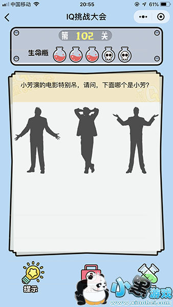 《微信iq挑战大会》第102关怎么过?第102关的题目是小芳演的电影特别吊请问下面那一个是小芳?这一题说实话,没有任何的提示,不过如果你没有想到的话,这里已经帮你安排好了,那么下面我们就来看下这一关的答案吧。