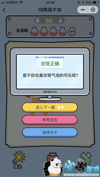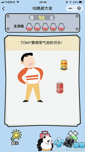 《微信iq挑战大会》第98关怎么过?第98关的题目是TOMY要喝带气泡的可乐?这个TOMY要喝汽水还这么多的要求呢,怎么才能弄成气泡的汽水咧?那么下面我们就来看下这一关的答案吧。