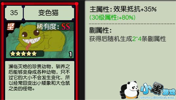 2.变色猫,效果抵抗卡。主属性:满级暴击抵抗+80%,副属性随机生成。