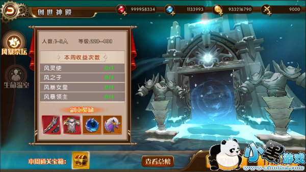 创世神殿总共5层,目前开放前两层【风暴祭坛】、【生命温室】。每一层创世神殿在服务器开启时处于封印状态,封印解除之前是无法挑战的哦!