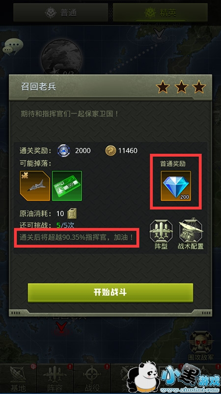 最最最最重要的是,通关精英副本,可以获得数量不少的钻石哦。另外还有一个超越没通关指挥官的百分比,可以知道自己的通关排位,这种小设计也增加了指挥官的成就感呢!