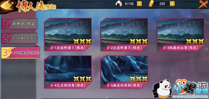玩法思路:这个阵容具有高额的爆发能力和单体控制能力,并且可以触发7连追打伤害非常的可观;在进入副本后,我们首先需要使用鹿丸释放影子模仿术对敌方笕堇施加定身效果,使其无法行动;第二阶段我们使用佐助【少年篇】的必杀豪火球术造成高额的群体伤害,在这个阶段对面已经基本血量不是很多了,只需要普攻几下就可以成功通关。