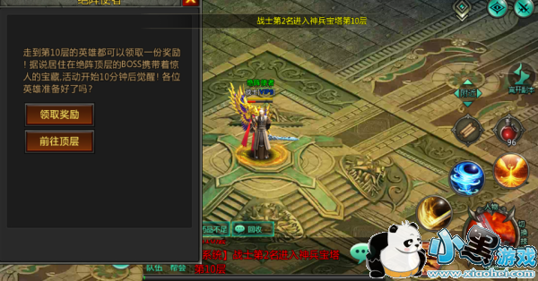 第10层是位NPC,可经过NPC绝阵使者传送前往顶层击杀顶层boss,击杀顶层boss可获得丰厚的奖励,且伤害排行前三名获得宝箱哦。