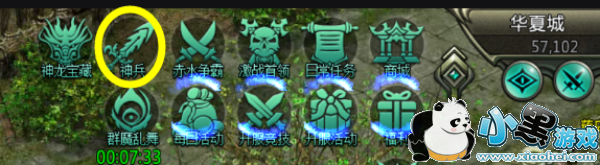 玩家开启神装功能后可通过游戏上方功能栏-神兵 进入功能