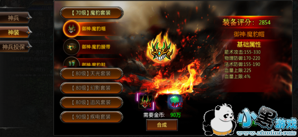 套装目前分为70级、80级、战神3级80级、战神5级80级、战神5级90级
