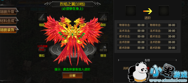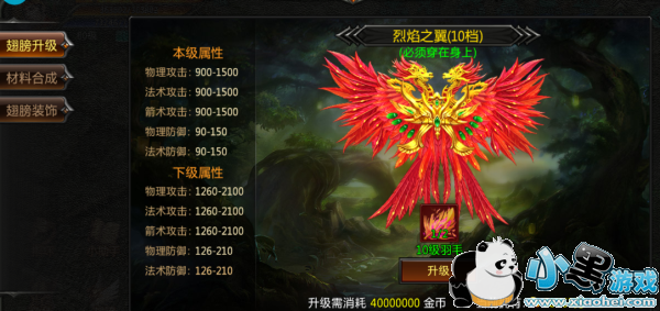 翅膀功能共分为升级、合成、装饰三大功能