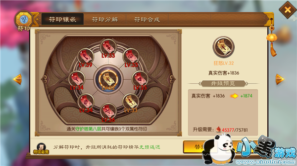 另外通过每日的扫荡符印塔都可获得大量符印与符印精华,我们可以将不用的符印分解成符印精华,符印精华可以用于提升符印的等级来提升符印属性。