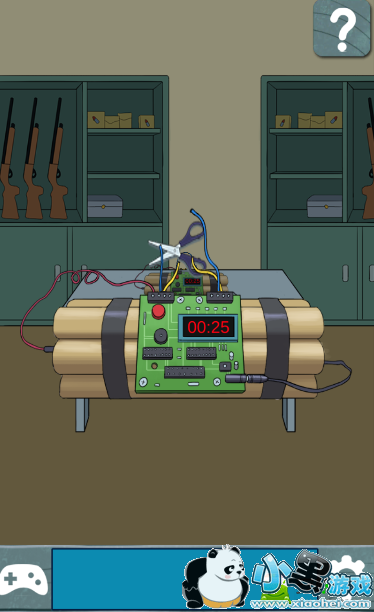 第一关其实非常的简单,首先获得桌子上的剪刀,然后再点击炸弹;