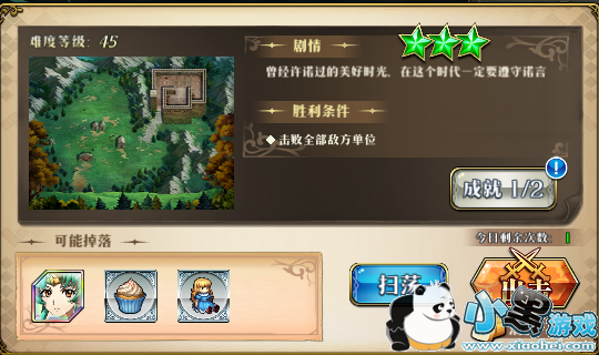 这地方卡住了很多人,毕竟只有安洁丽娜是自己练的,其余都是NPC,技能和等级都不能变动,而后无奶六打八,我也是经过几天研究终于发现了破绽。打开危险范围,大家会发现,下边有一个豁口,距离雪露法妮尔只有四格,但不在危险范围内。因此,开局用四个回合,让拉娜走到那个格子,娜姆走到她后面的格子。而安洁丽娜(必须飞兵,水兵不适用这个打法),露娜,索尼娅,雪莉则迂回到最上边紧贴危险范围的四个位置(必须紧贴)就位。这中间有个不可控因素就是克丽丝的礼物别刷出移动距离+1,刷出的话只能等这个效果消失再落位,但得不了三星。第五回合开搞,拉娜前进三格黑洞,覆盖对方奶妈全员。而后娜姆跟进封雪露法妮尔的主动技能(这里也要拼脸,另外依然秒不了,没办法,但封了主动技能即可),上方,安洁丽娜带攻击指挥,到莉亚娜上边那个位置雷光攻击,秒不了,但大家注意,奶妈组合已经被黑洞削弱一次,再加这个攻击指挥……接下来,索尼娅秒蒂亚莉丝,雪莉风语收掉莉亚娜而后秒索菲亚,露娜秒克丽丝,这样一回合下来,奶妈大阵全部被拿下,雪露法妮尔残血而且无主动技能,会自己送死,就剩一个芙蕾娅+两队杂兵,大家应该会打了吧。