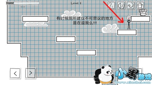 3、这里大家要注意了,掉入坑道的时候,要一直按住向右行走的按钮,这样人物才能掉落到空中右侧的平台上,然后继续向右跳上去就能到达马桶了。