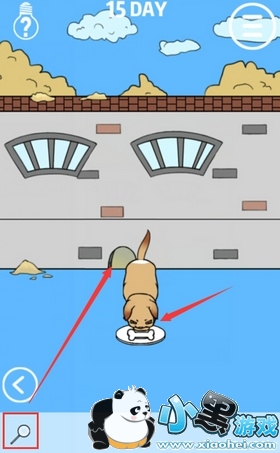 2.到右边先用骨头把狗引出来,然后用放大镜放大狗洞入口,这样就可以从狗洞爬进校园了(这样也行???)。