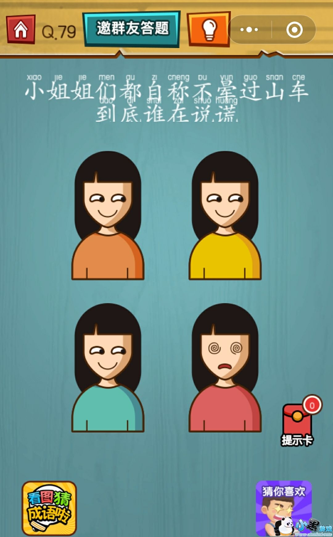 烧脑吃鸡大作战第79关怎么过?小姐姐们都自称不晕过山车到底谁在说谎,到你是哪个小姐姐在说谎,我们试试不就知道啦!现在我们只要想办法弄晕她们,下面就来看看小编是怎么做的吧!