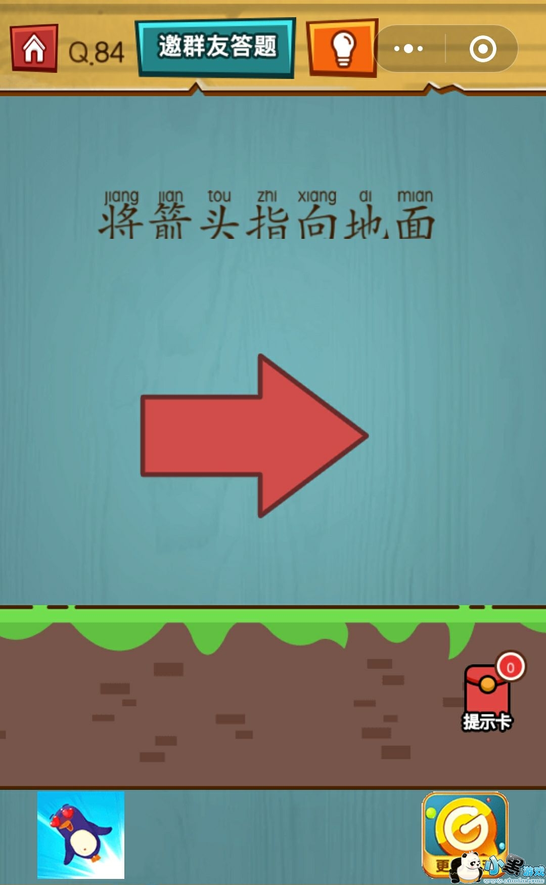答案:在这一关,我们该如何将箭头指向地面,我们只需要将手机向右转,这样就指向地面,就可以轻松过关啦!