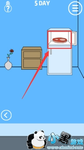 1.向右切换场景,打开冰箱找到肉块。
