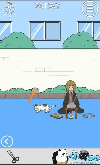 答案:如上图所示,在这一关我们只需要从老师手里拿黄瓜,左边灯罩里找到剪刀,把黄瓜丢在猫咪身后,趁机剪毛。右转把毛交给药剂师,从洞里爬过去,就可以进入宿舍啦!