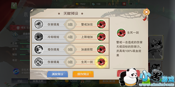 八级生死一剑:警戒一击造成的伤害无视目标的防御力,并具有100%吸血效果