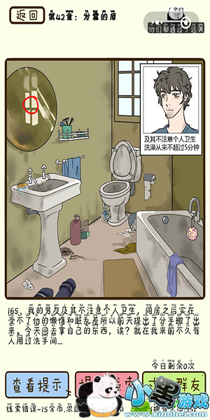 再见吧渣男第42章怎么过?在这一关,我们来到了一个发霉的屋子,这次的难以是一位及其不注意个人卫生,洗澡从来不超过5分钟,这样渣男也有人要,这个世界怎么了?