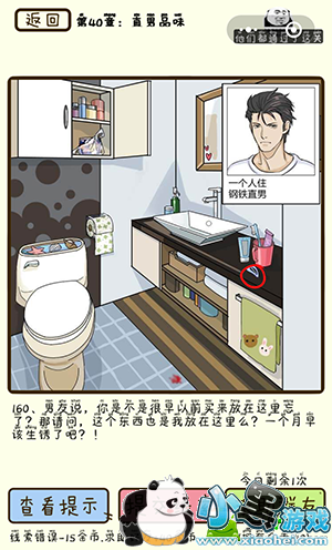 再见吧渣男第40章怎么过?在这一关我们来到了直男品味的家里面,这位长腿欧巴是一个身高190,只喝黑咖啡的男子,下面就和小编一起来看看他的揭秘吧!