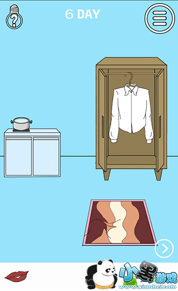 我们需要先打开衣柜,就会看到衣服上的唇印,我们只需要拿走(烈焰红)唇印,再把它右转拿来亲王子,就可以拿青蛙变王子,我们就可以过来吃泡面啦!