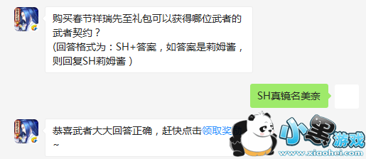 问题:购买春节祥瑞先至礼包可以获得哪位武者的武者契约?